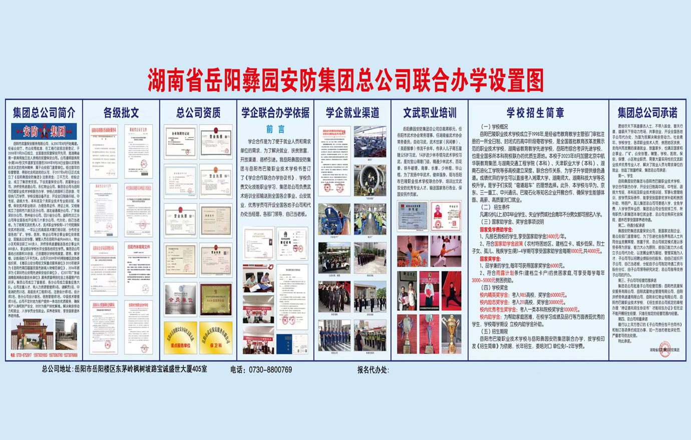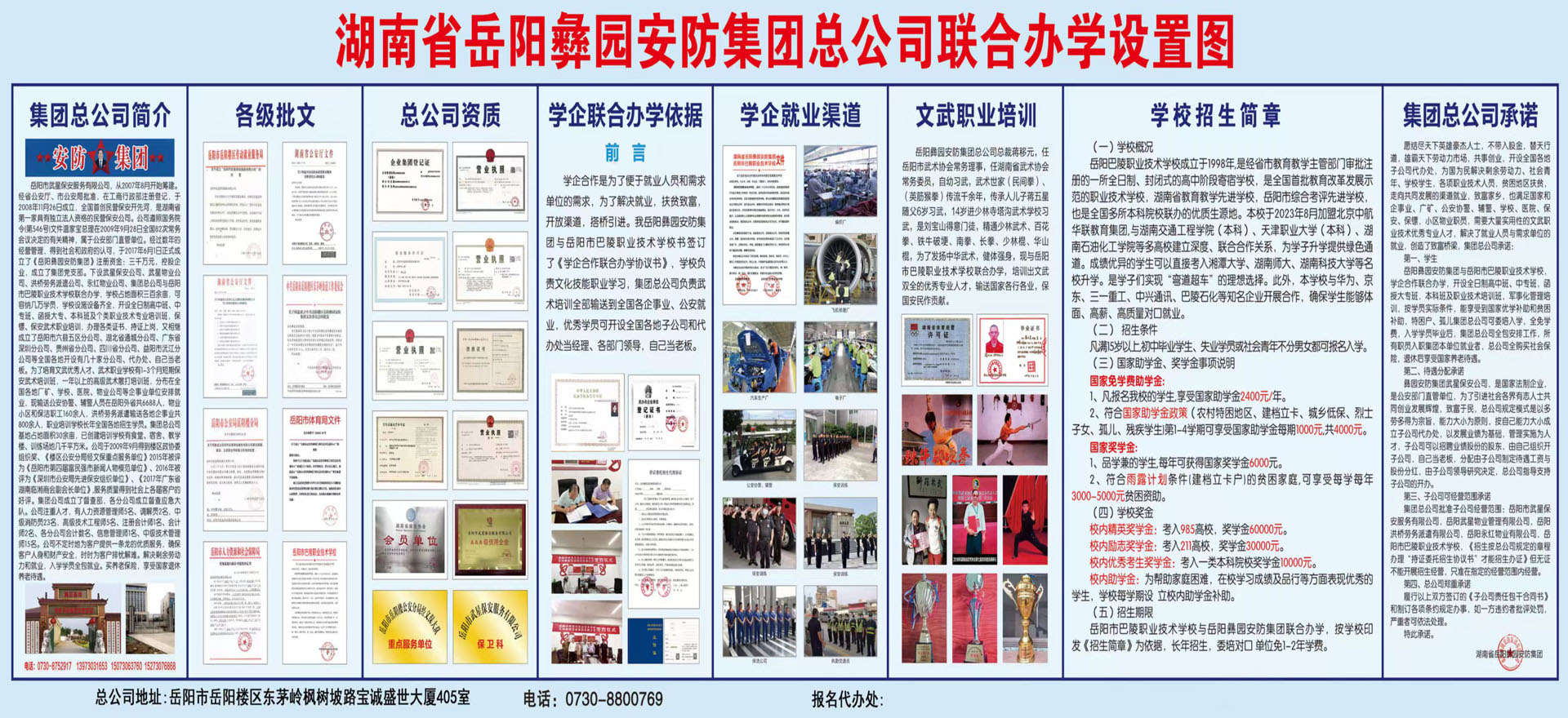 2017年6月正式成立了《岳陽(yáng)彝園安防集團(tuán)》,下設(shè)《武星保安公司》、《武星物業(yè)公司》、《洪橋勞務(wù)派遺公司》、《保鏢保安武術(shù)職業(yè)培訓(xùn)學(xué)?!返茸庸?/p>